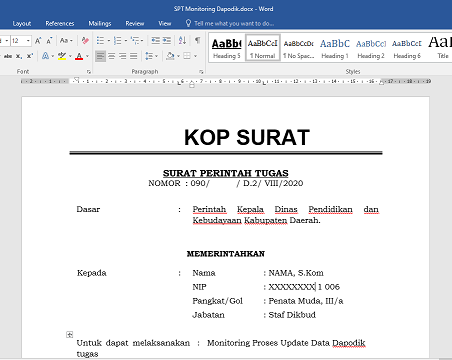 Contoh surat perjalanan dinas sppd sekolah download doc microsoft word.