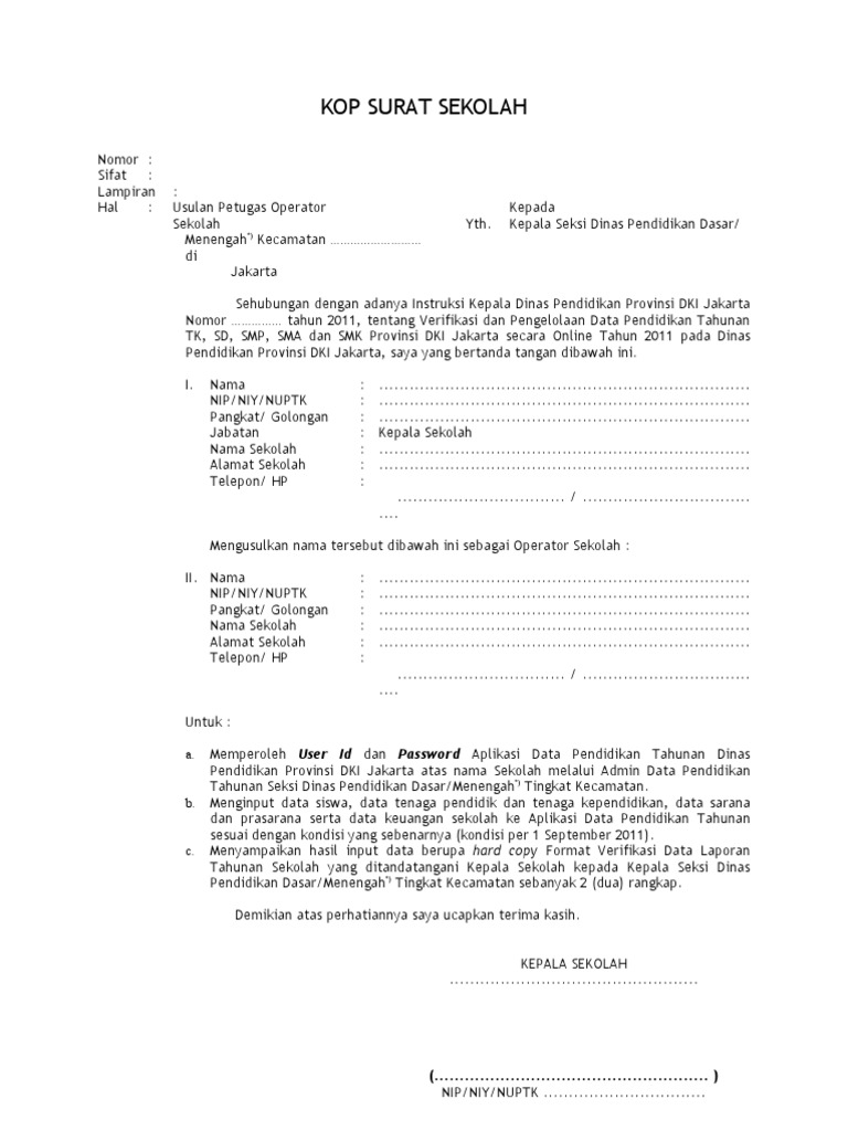 Demikian surat permohonan ini saya perbuat dan saya ajukan dengan sebenarnya, atas perhatian dan kebijaksanaan ibu kepala sekolah, saya ucapkan terimakasih. Posting terkait apabila surat permohonan tersebut dibuat oleh suatu lembaga/organisasi maka pada bagian atas surat harus dilengkapi dengan kepala atau kop surat, hal ini untuk menyatakan identitas lembaga atau instansi. Surat pernyataan kepala sekolah tentang kesiapan penyelenggaraan pembelajaran tatap muka di sekolah/madrasah menjadi salah satu persyaratan yang harus dipenuhi oleh satuan pendidikan baik sekolah/madrasah untuk dapat menyelenggarakan pembelajaran tatap muka di sekolah. Doc contoh surat dinas resmi sekolah mega seran academia edu. Surat dinas sekolah biasanya berisi tentang undangan rapat komite ataupun permohonan izin pada suatu kegiatan.